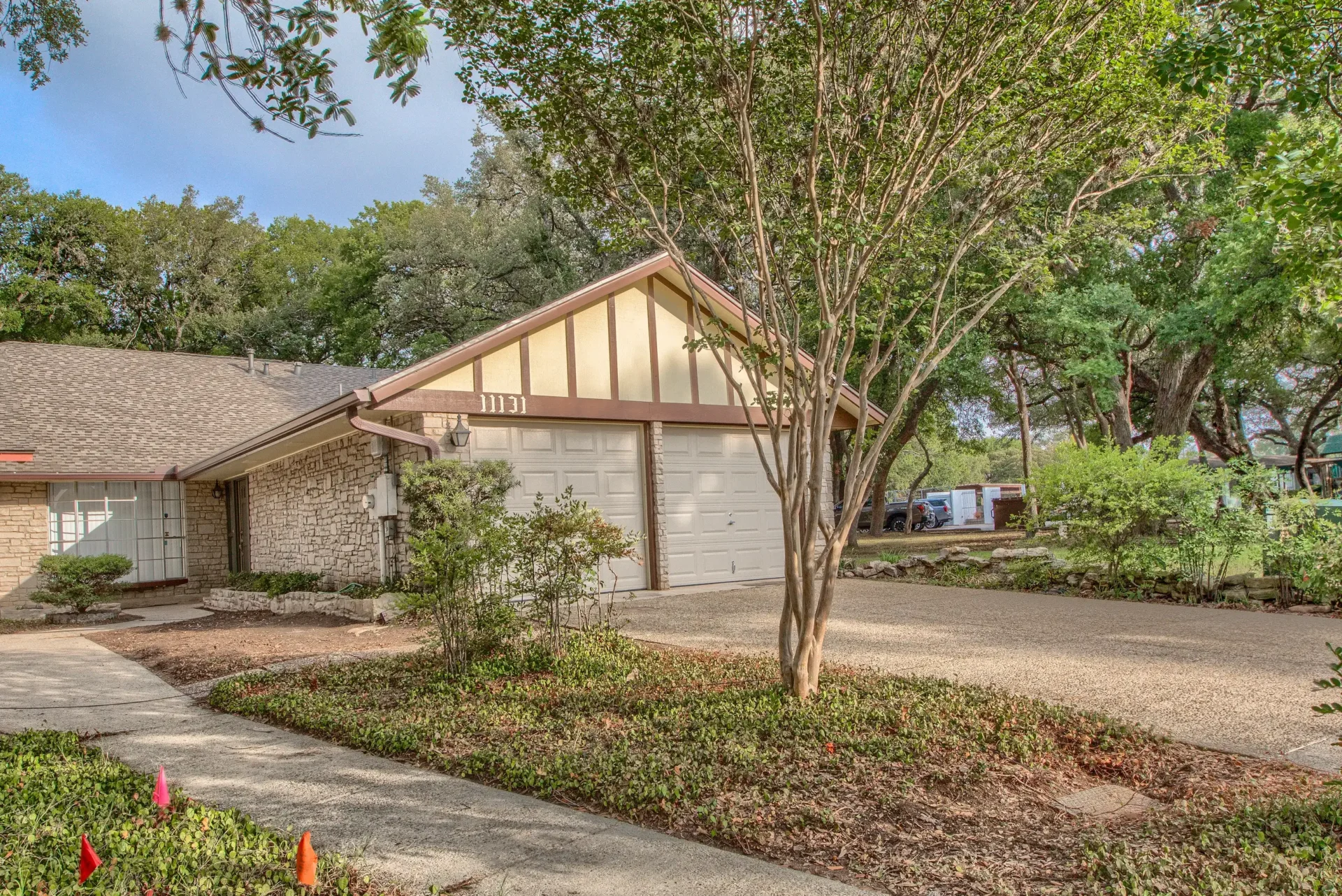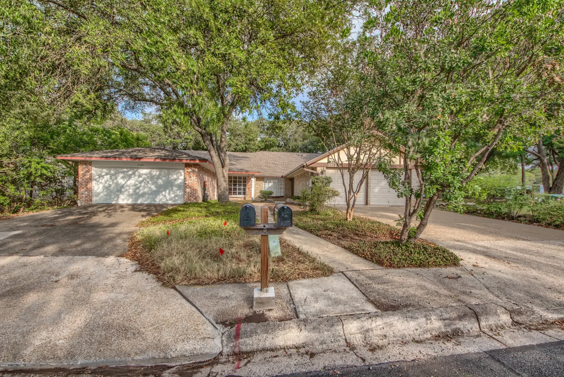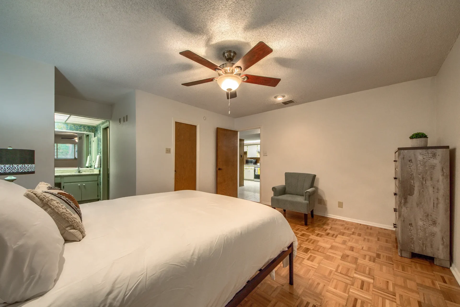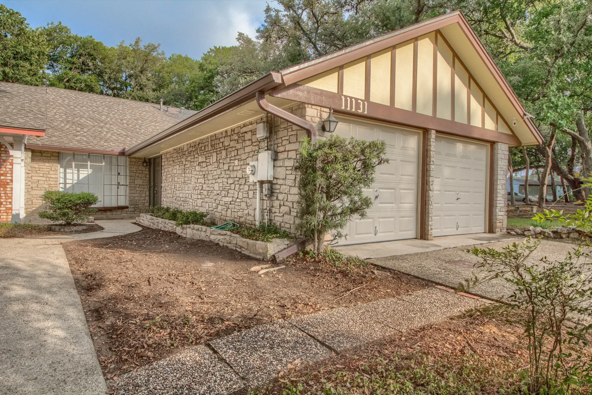 Outstanding 1970s one-story townhouse in a desirable north central San Antonio neighborhood. The property is close to UTSA, medical center, shopping, dining, parks, and highways. It has a large stocked kitchen with stainless steel appliances. You will appreciate the two-car garage with openers, covered patio with fan, party lights, ceiling fans, and fenced yard. The house has a designated office space complete with desk and chair. One bedroom has a queen size bed and en-suite bathroom with a walk-in shower. The second bedroom has a queen size bed with an adjacent tub/shower bathroom. You will appreciate the full-size washer, dryer, and all the storage space. It can be great for roommates. The townhouse does share a common wall with the adjacent property.