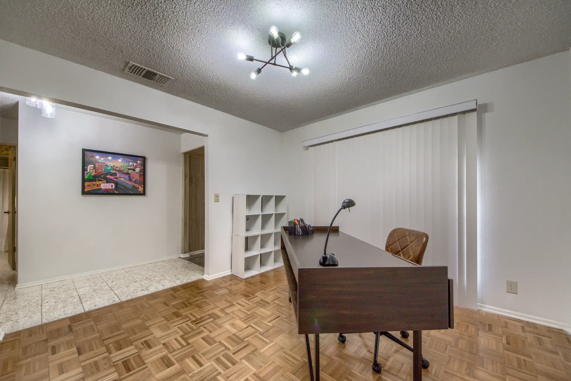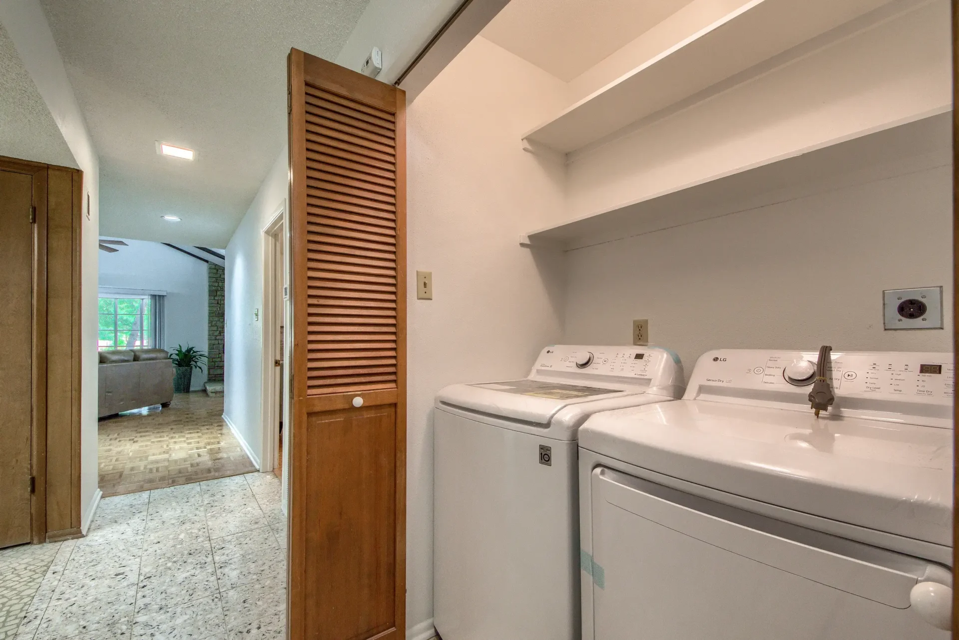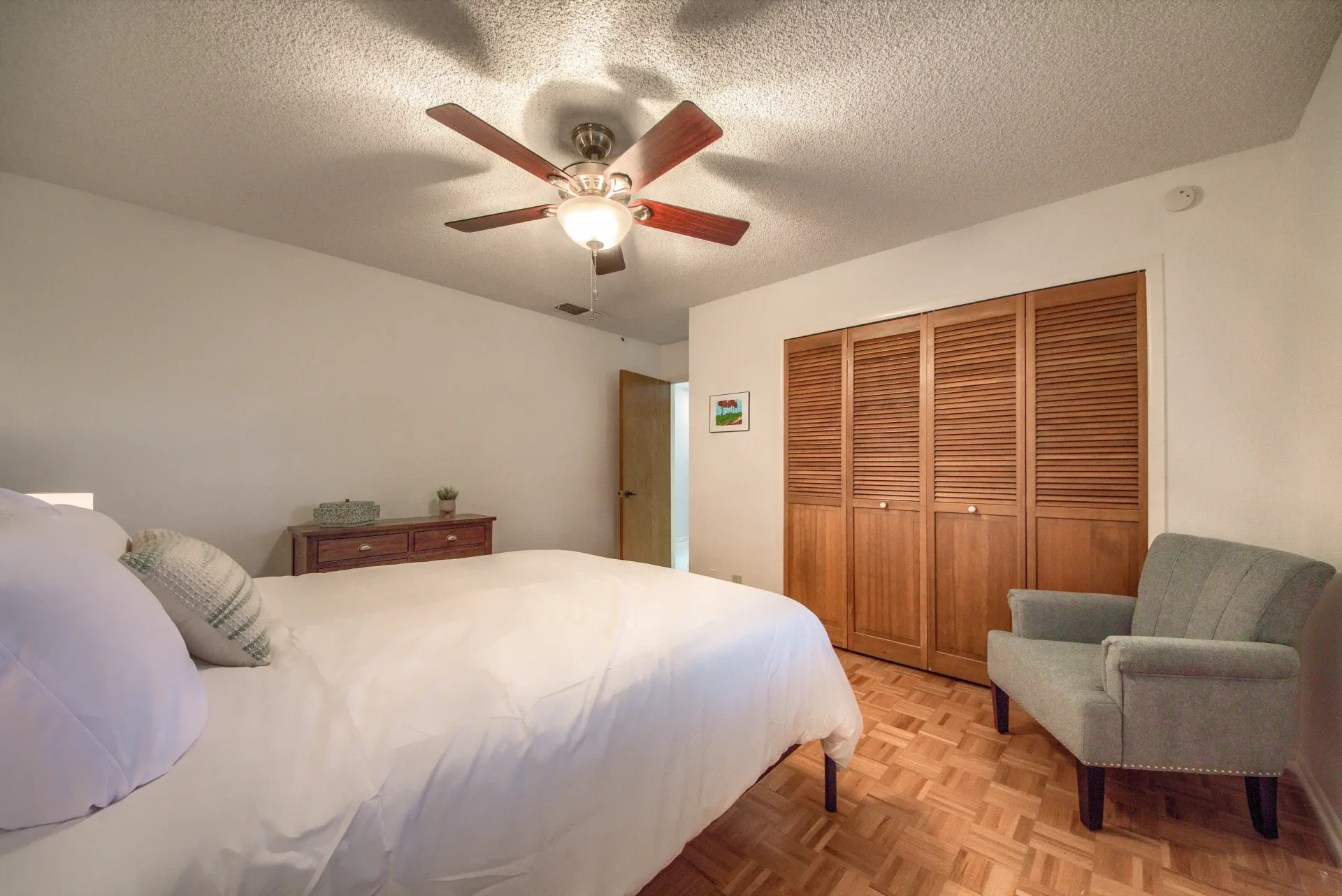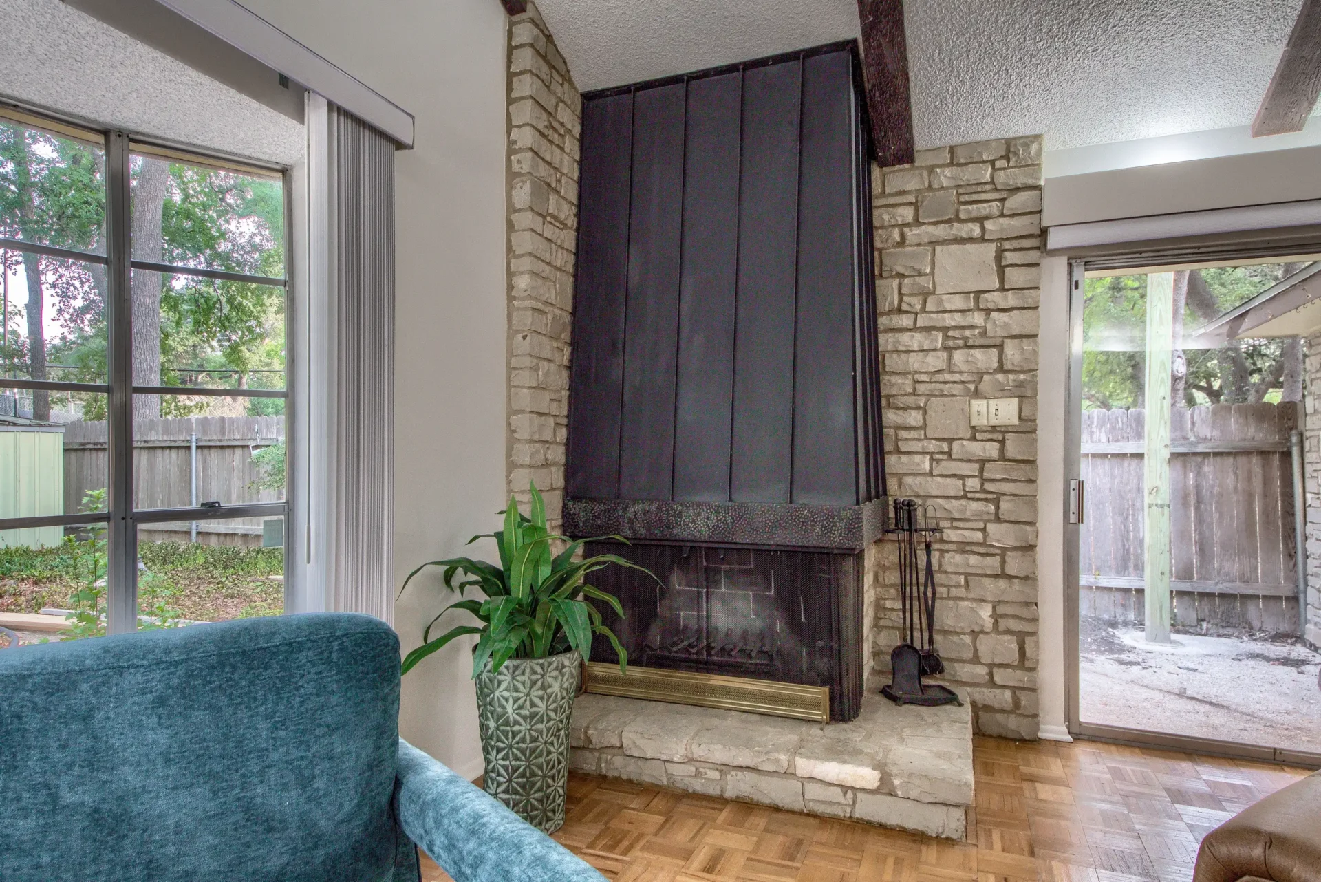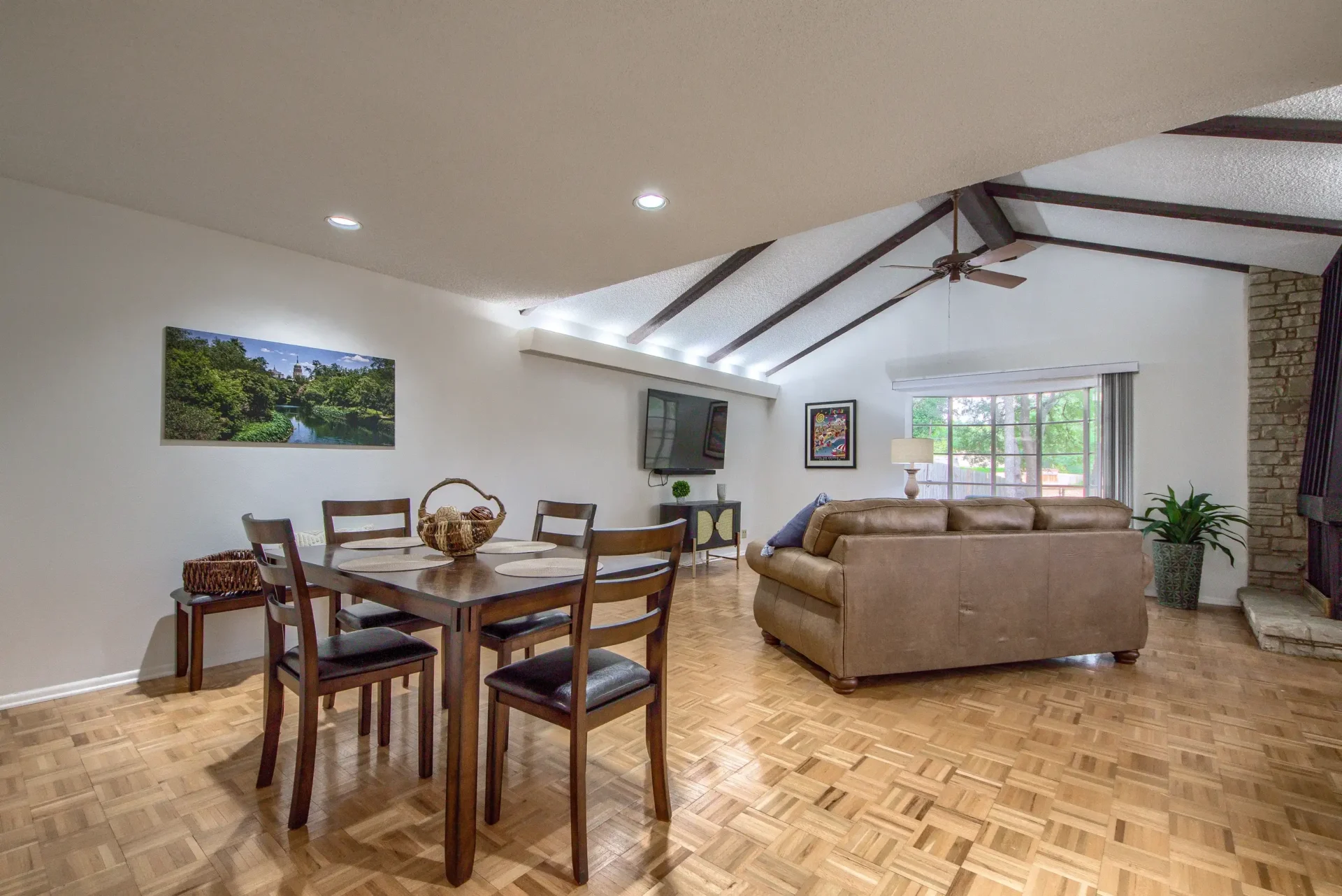 Outstanding 1970s one-story townhouse in a desirable north central San Antonio neighborhood. The property is close to UTSA, medical center, shopping, dining, parks, and highways. It has a large stocked kitchen with stainless steel appliances. You will appreciate the two-car garage with openers, covered patio with fan, party lights, ceiling fans, and fenced yard. The house has a designated office space complete with desk and chair. One bedroom has a queen size bed and en-suite bathroom with a walk-in shower. The second bedroom has a queen size bed with an adjacent tub/shower bathroom. You will appreciate the full-size washer, dryer, and all the storage space. It can be great for roommates. The townhouse does share a common wall with the adjacent property.