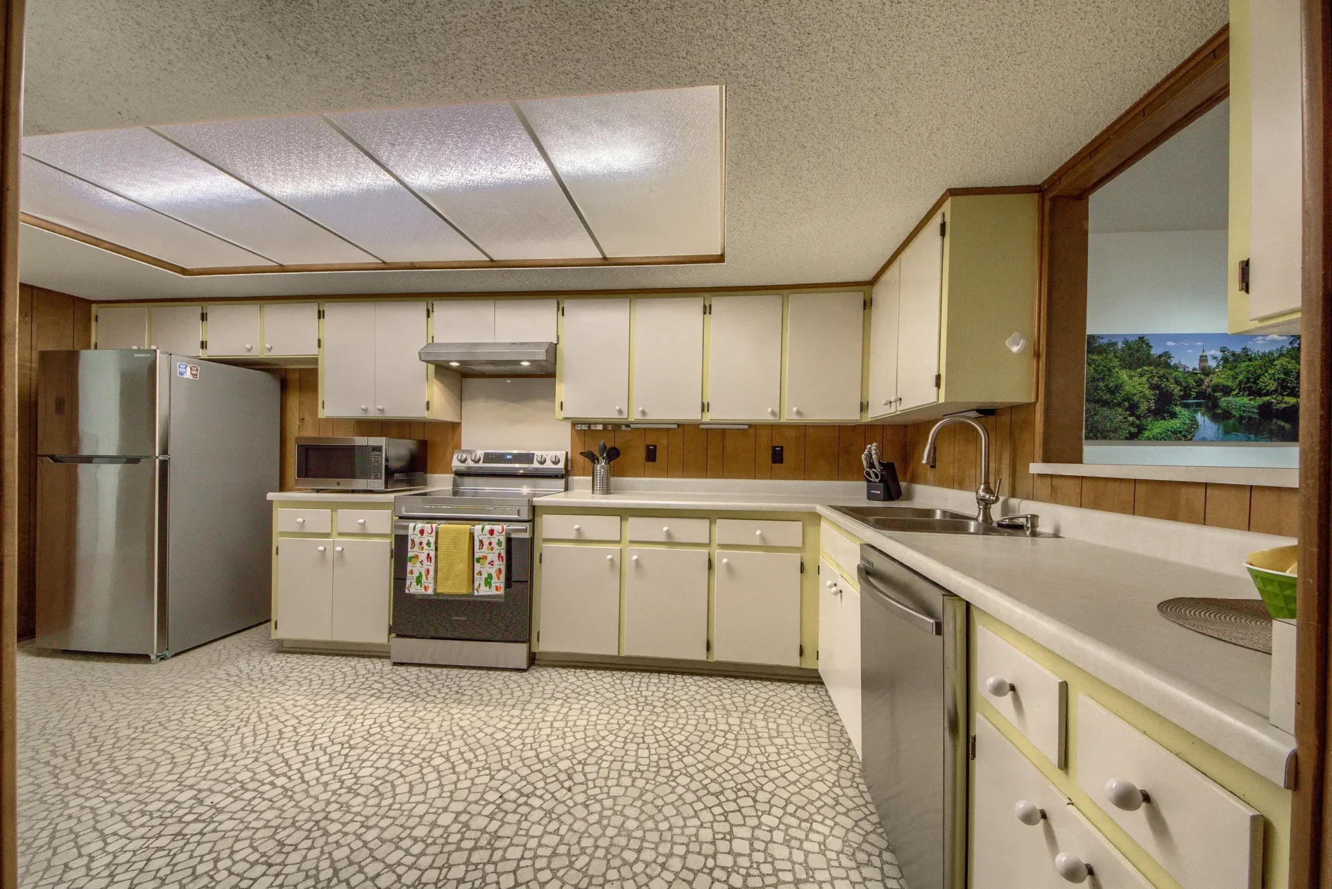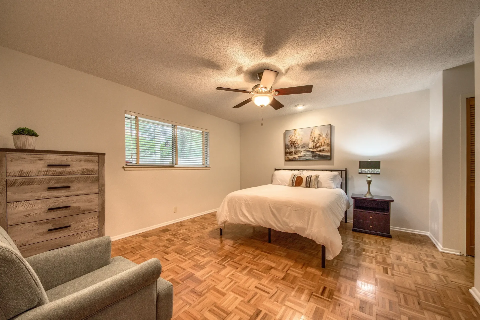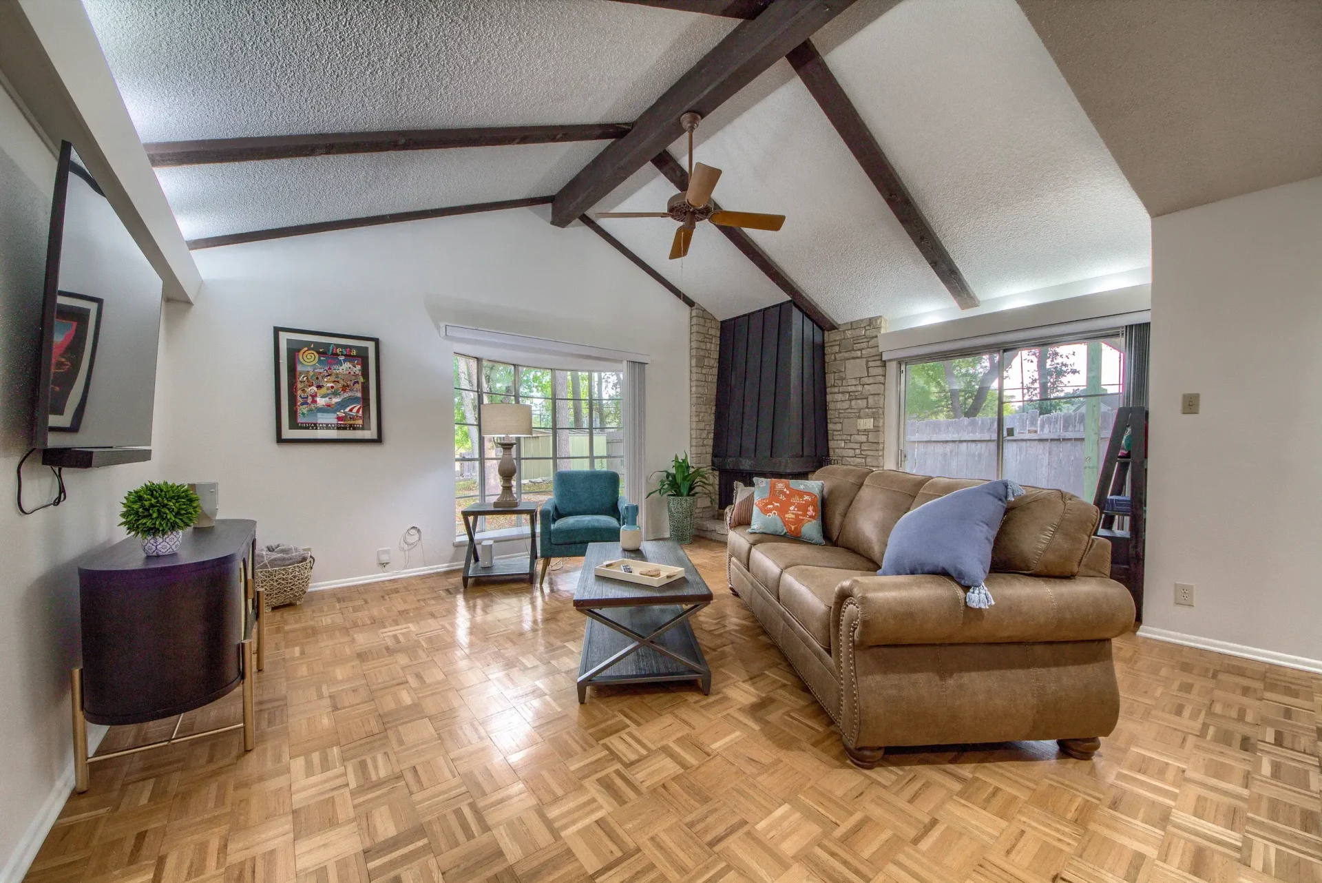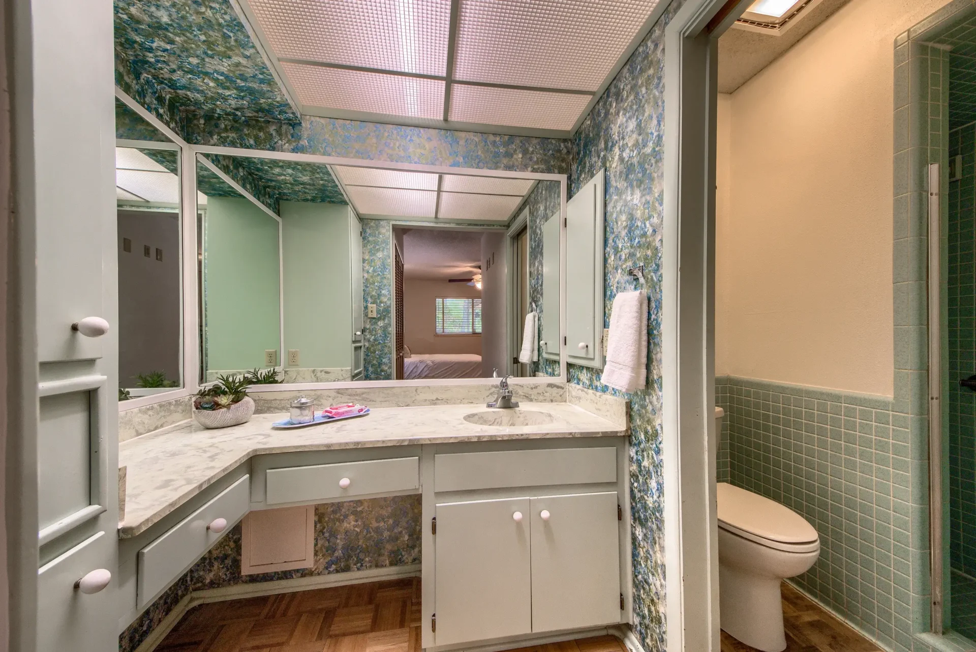 Outstanding 1970s one-story townhouse in a desirable north central San Antonio neighborhood. The property is close to UTSA, medical center, shopping, dining, parks, and highways. It has a large stocked kitchen with stainless steel appliances. You will appreciate the two-car garage with openers, covered patio with fan, party lights, ceiling fans, and fenced yard. The house has a designated office space complete with desk and chair. One bedroom has a queen size bed and en-suite bathroom with a walk-in shower. The second bedroom has a queen size bed with an adjacent tub/shower bathroom. You will appreciate the full-size washer, dryer, and all the storage space. It can be great for roommates. The townhouse does share a common wall with the adjacent property.