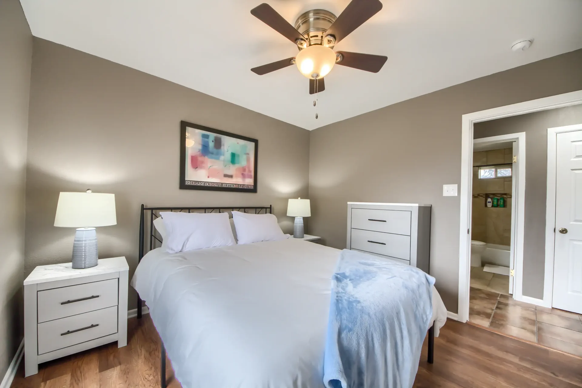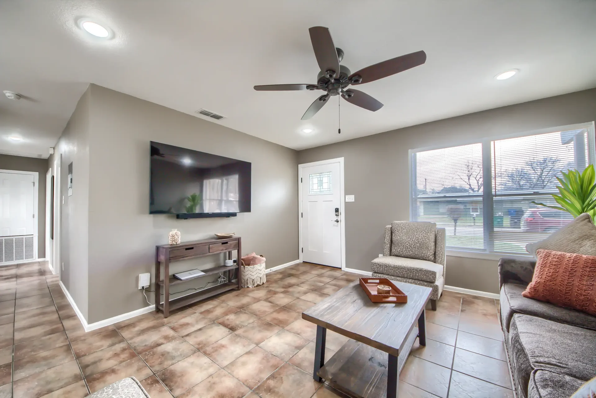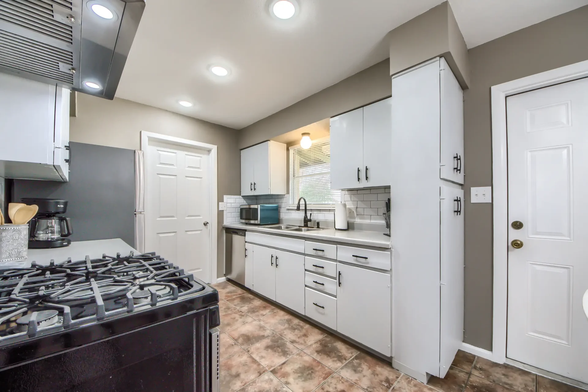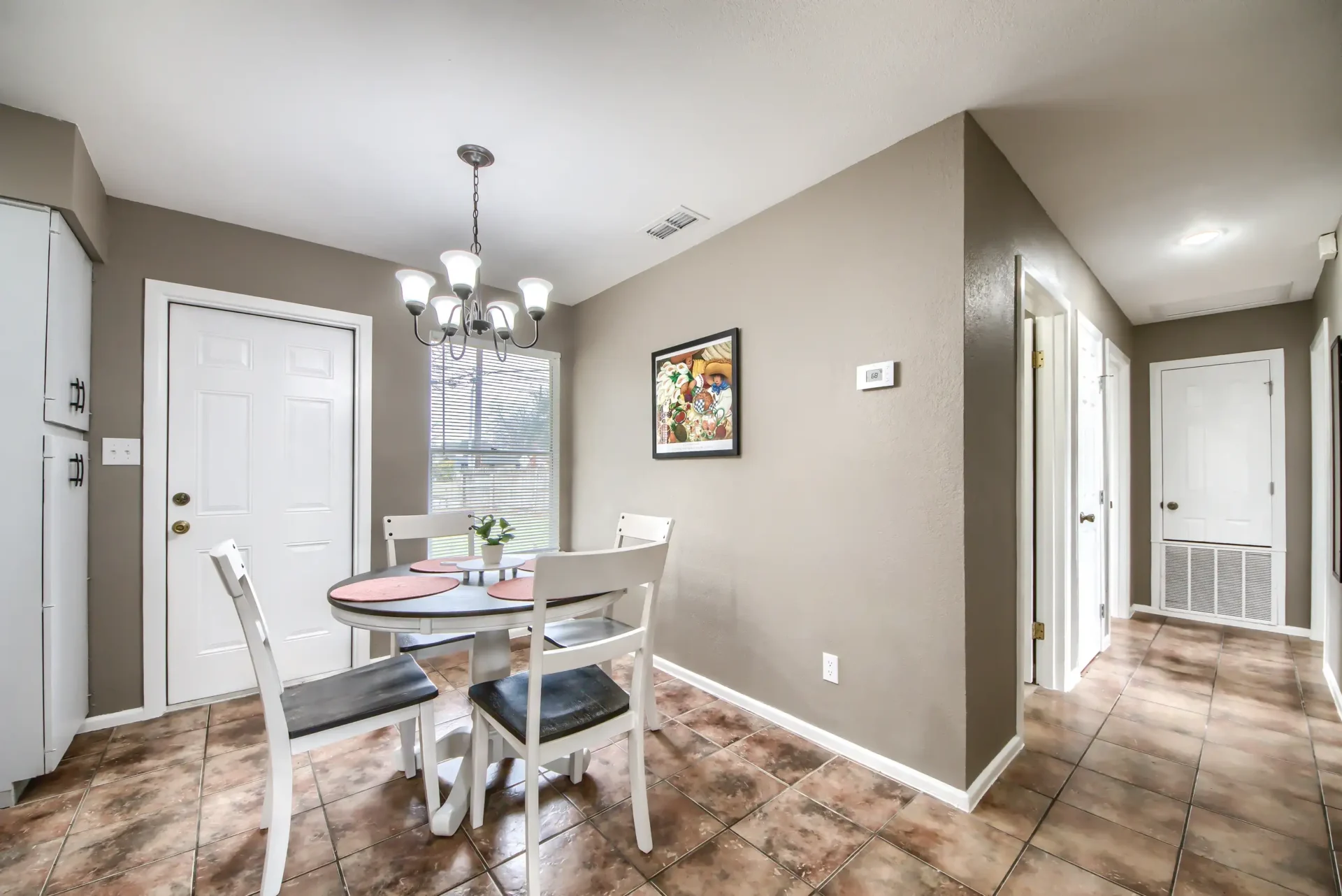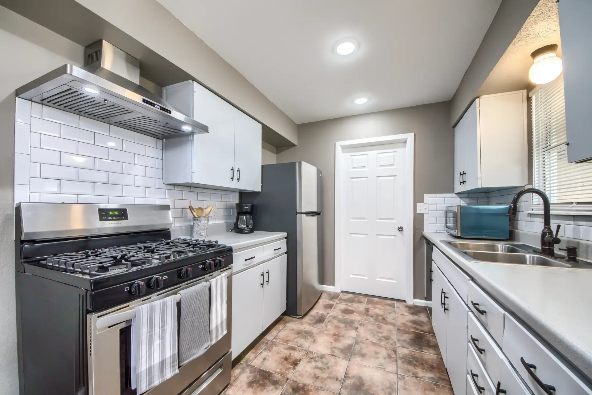This mid-century updated two-bedroom one-bath home has a one-car garage with an opener. The fiber internet allows for easier access. It is situated on a large corner fenced lot. You are very close to Fort Sam Houston and San Antonio Army Medical Center. Randolph Air Force Base is nearby on IH 35. The house possesses a dedicated office with desk and chair, an open floor plan with an eat-in kitchen. Both bedrooms have queen size beds and ceiling fans. You will appreciate the multiple closets and storage. The house has a stocked kitchen, linens, and towels. The full-size washer dryer are in the house and the kitchen has stainless steel appliances.