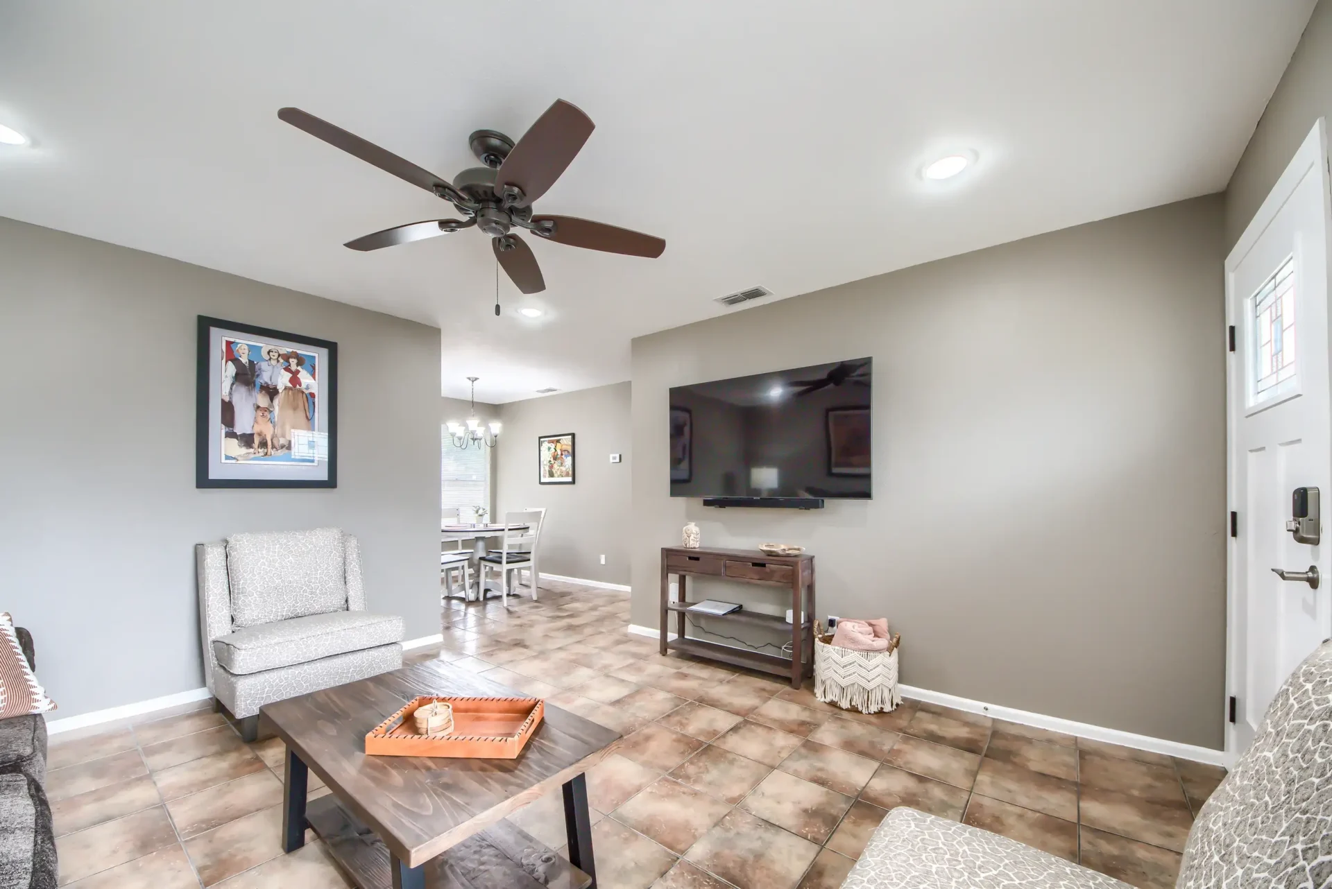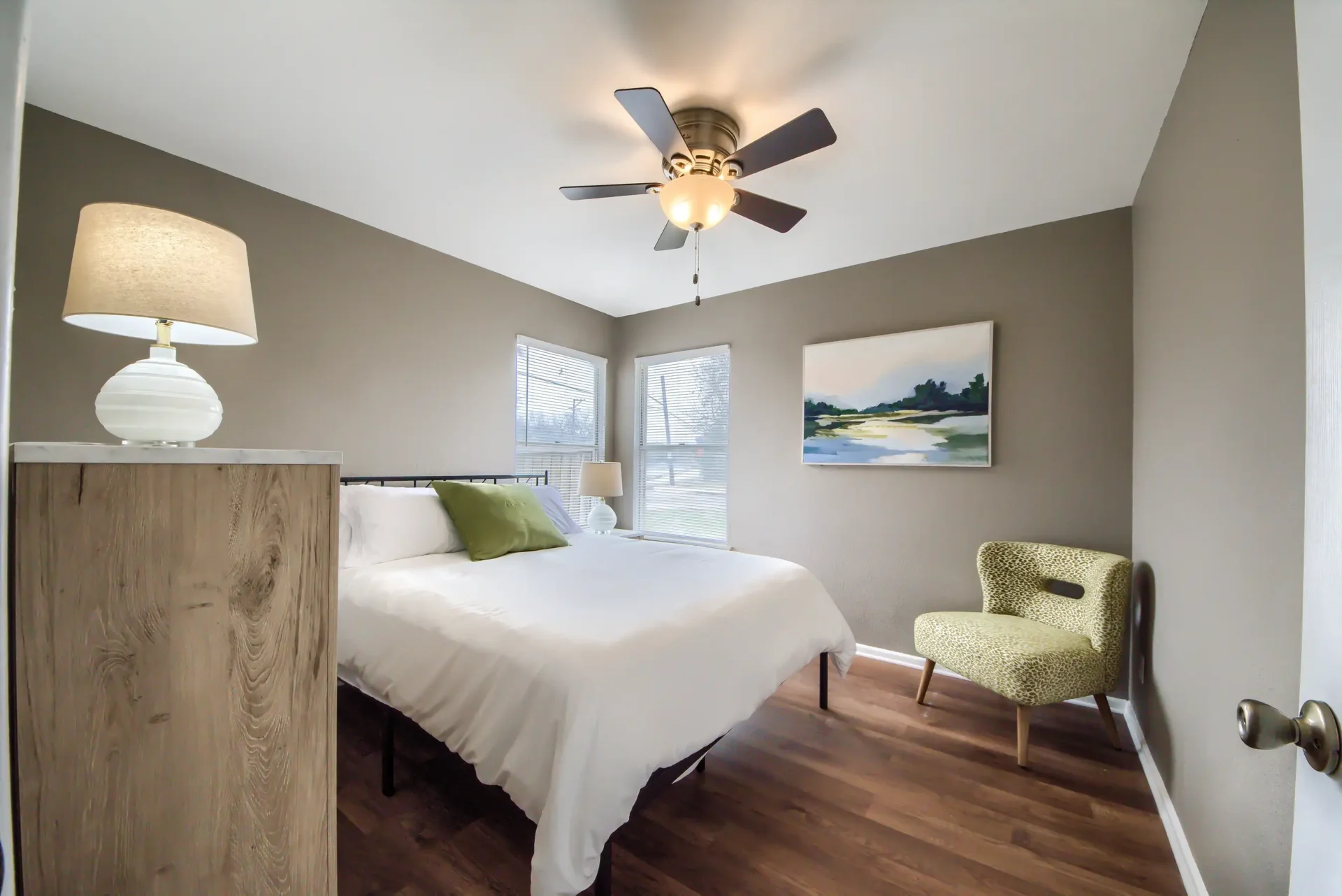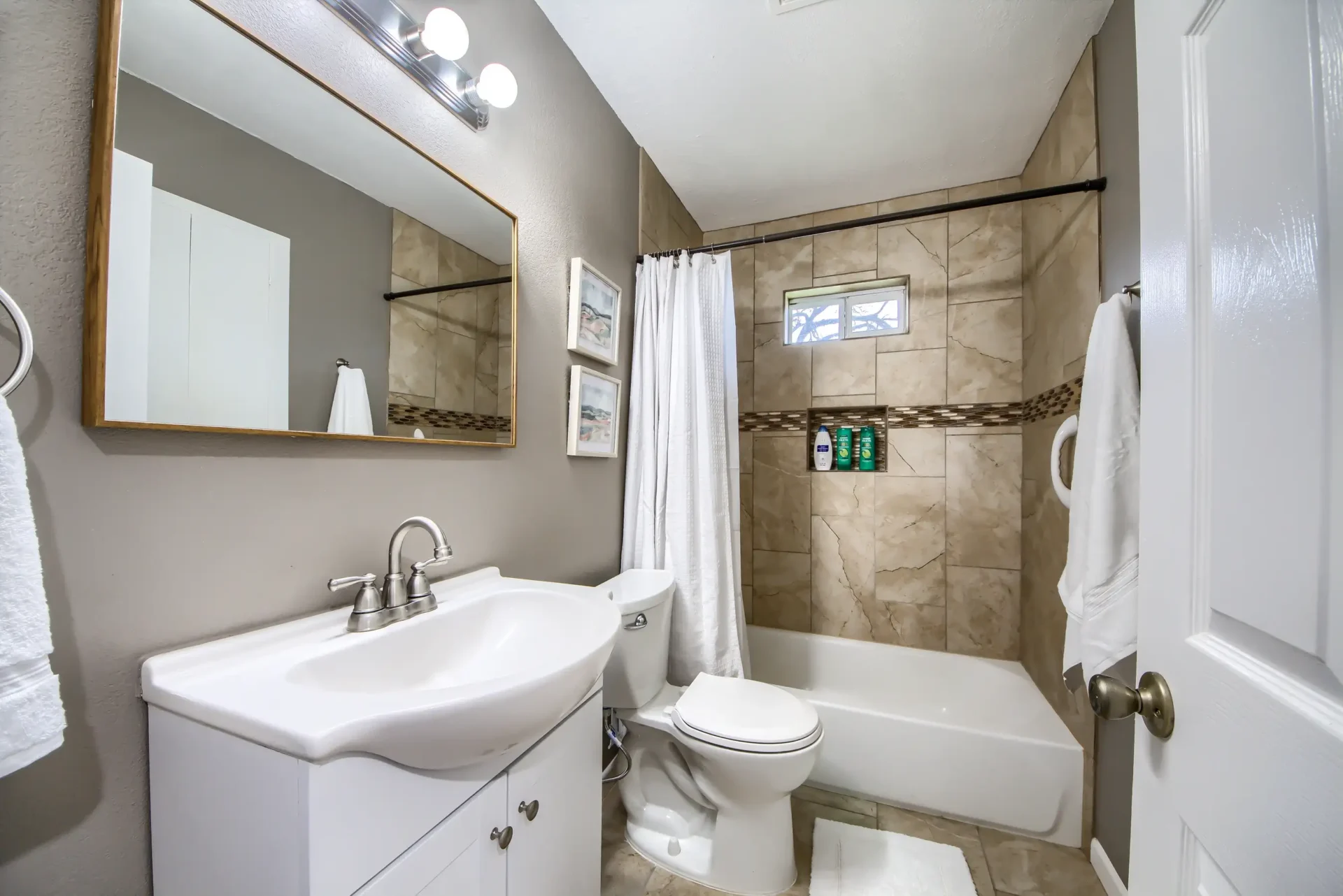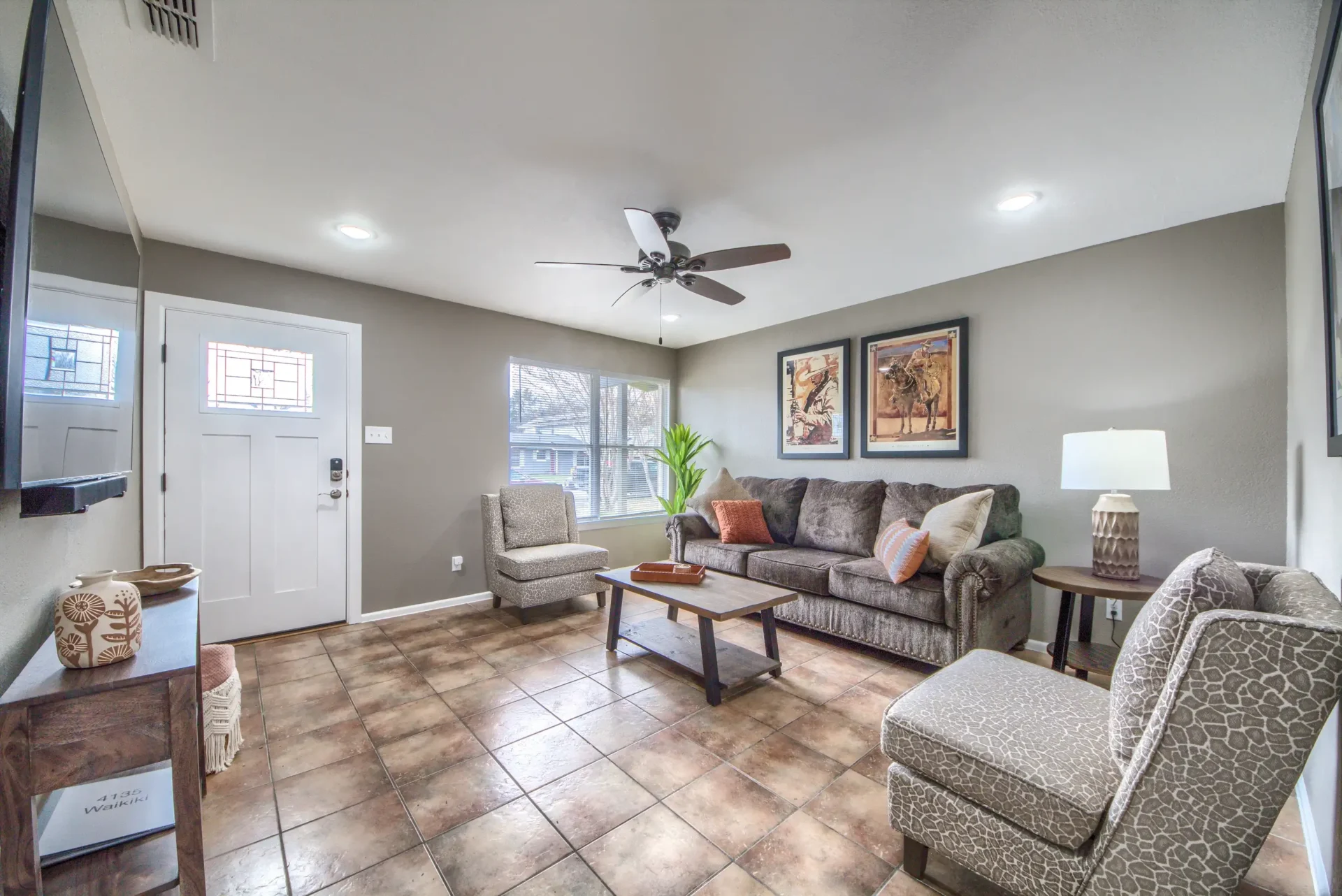 This mid-century updated two-bedroom one-bath home has a one-car garage with an opener. The fiber internet allows for easier access. It is situated on a large corner fenced lot. You are very close to Fort Sam Houston and San Antonio Army Medical Center. Randolph Air Force Base is nearby on IH 35. The house possesses a dedicated office with desk and chair, an open floor plan with an eat-in kitchen. Both bedrooms have queen size beds and ceiling fans. You will appreciate the multiple closets and storage. The house has a stocked kitchen, linens, and towels. The full-size washer dryer are in the house and the kitchen has stainless steel appliances.