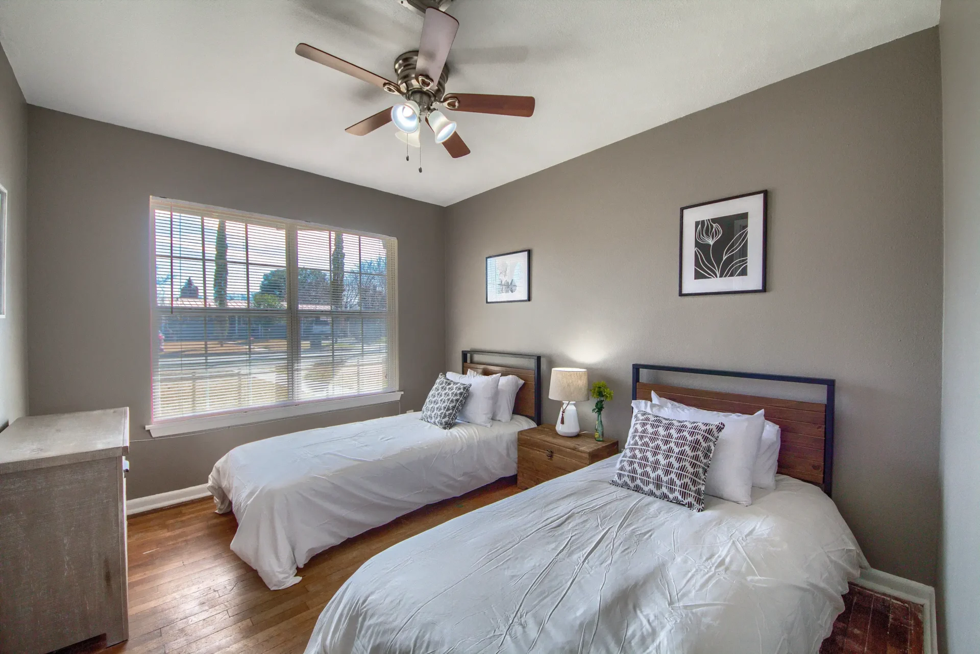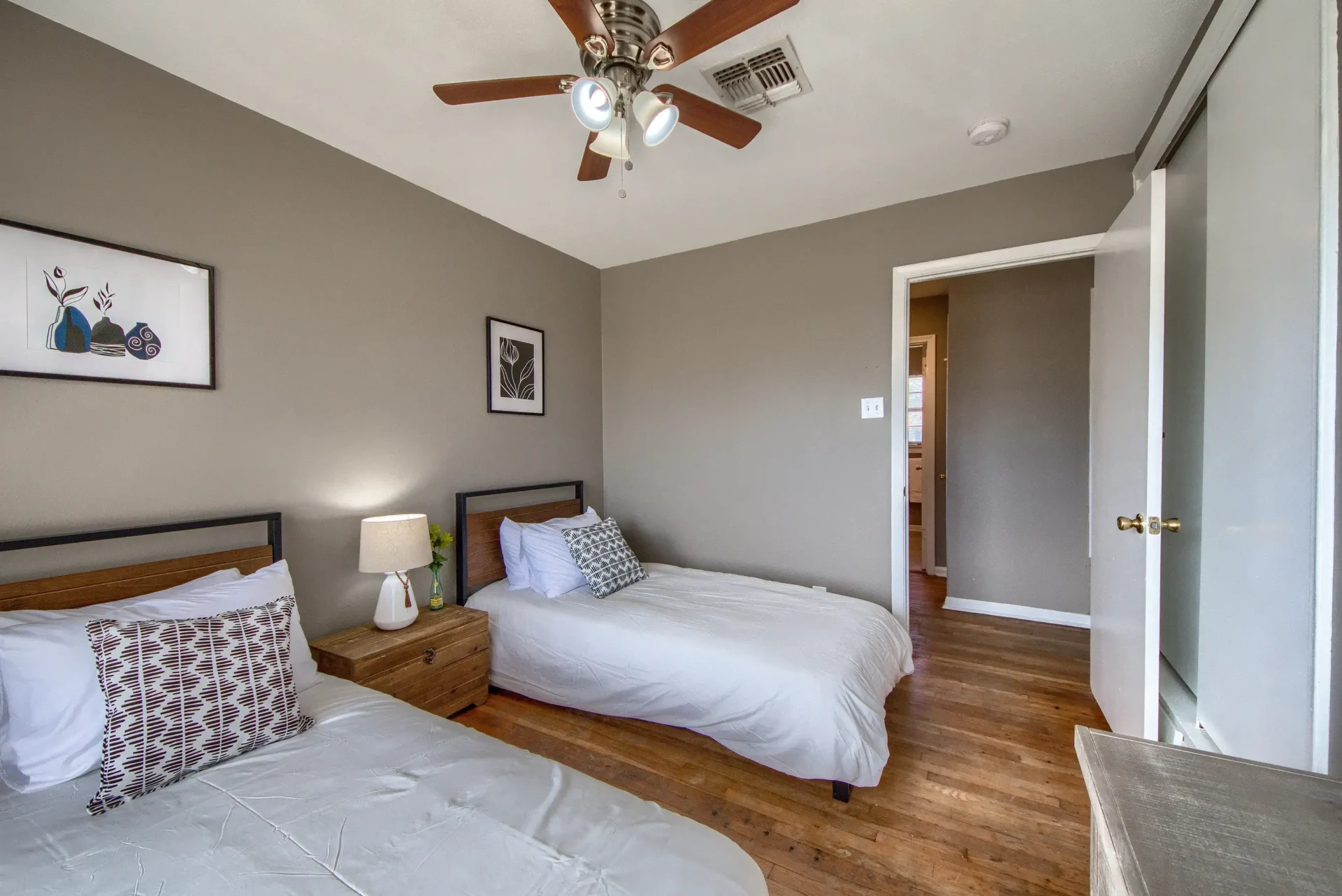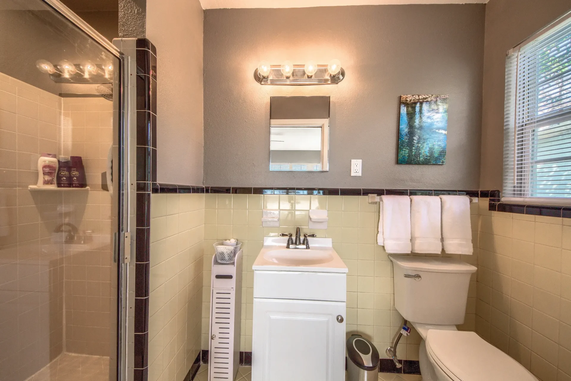 This is an updated mid-century three-bedroom, two-bath house. It has a Ring camera, fiber internet, stocked kitchen, linens, towels, stainless steel appliances, ceiling fans, and full-size washer dryer. Two bedrooms have queen-size beds. The third bedroom has two twin beds. One bathroom has a stand-up shower, and the other bathroom is a tub shower. The fenced backyard has a nice covered patio. There is ample parking and a one-car garage. It is very close to Fort Sam Houston, San Antonio Military Medical Center, and nearby Randolph Air Force Base. Parks, Trinity University, Incarnate Word, and entertainment are close by.