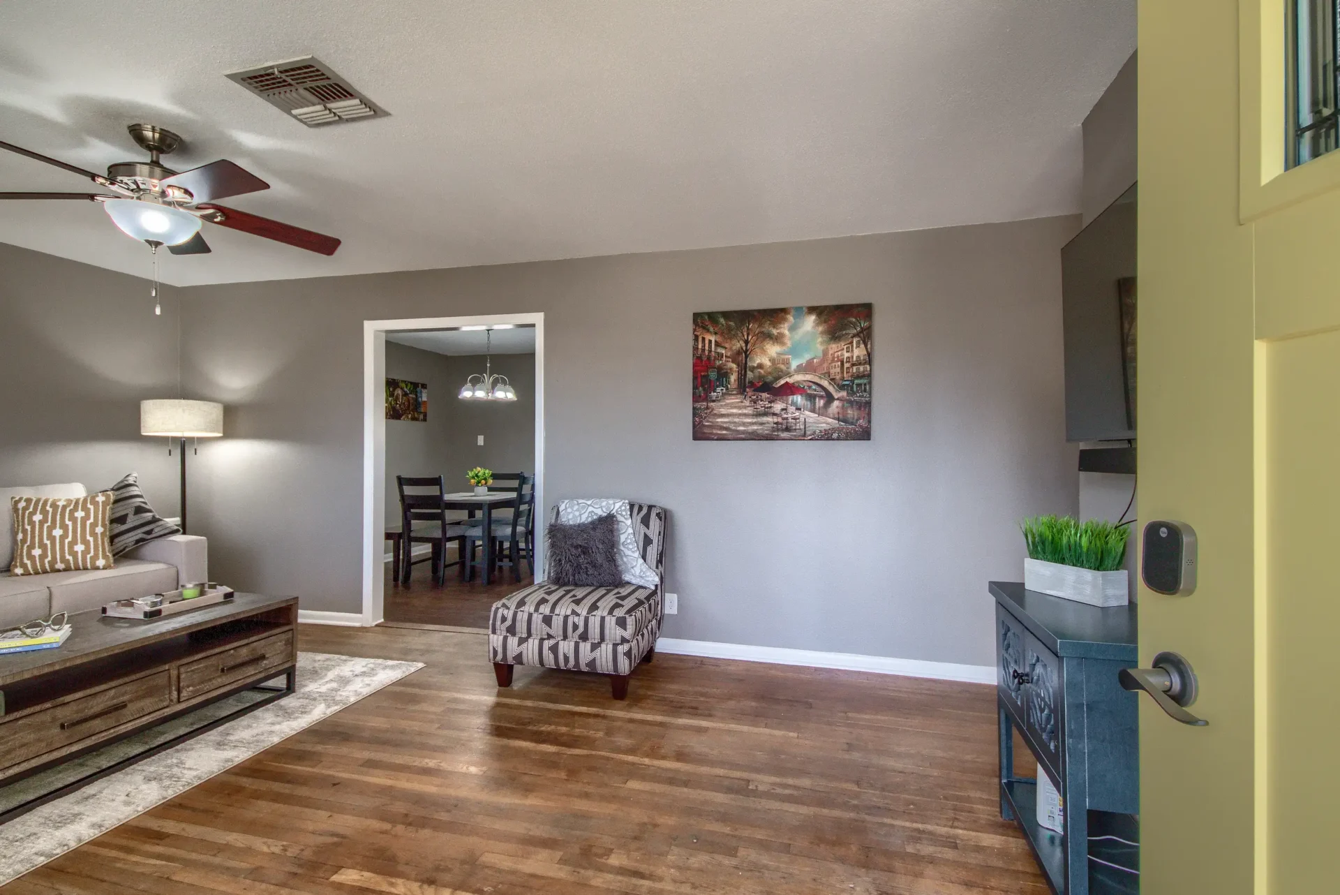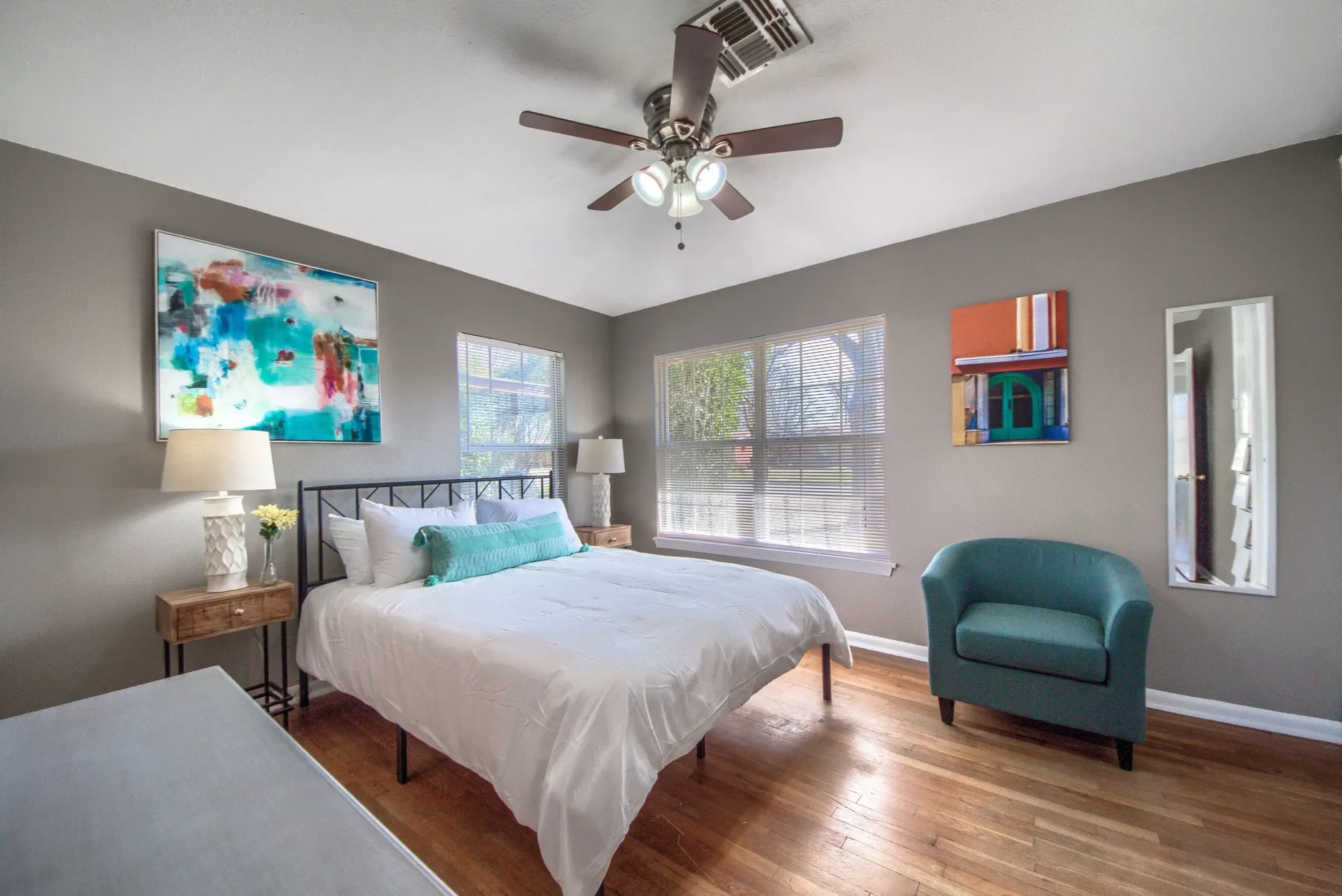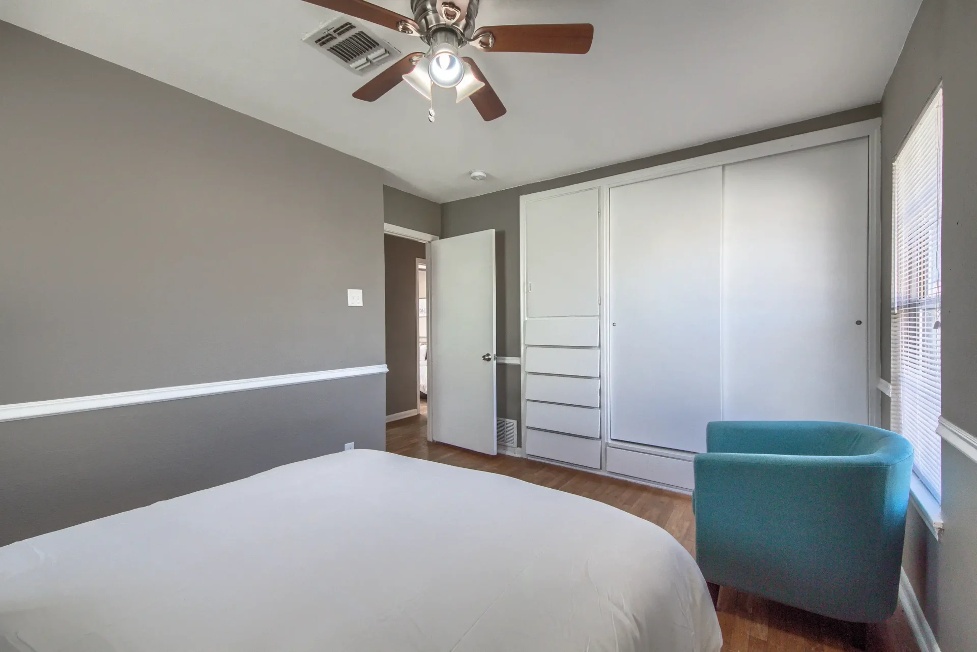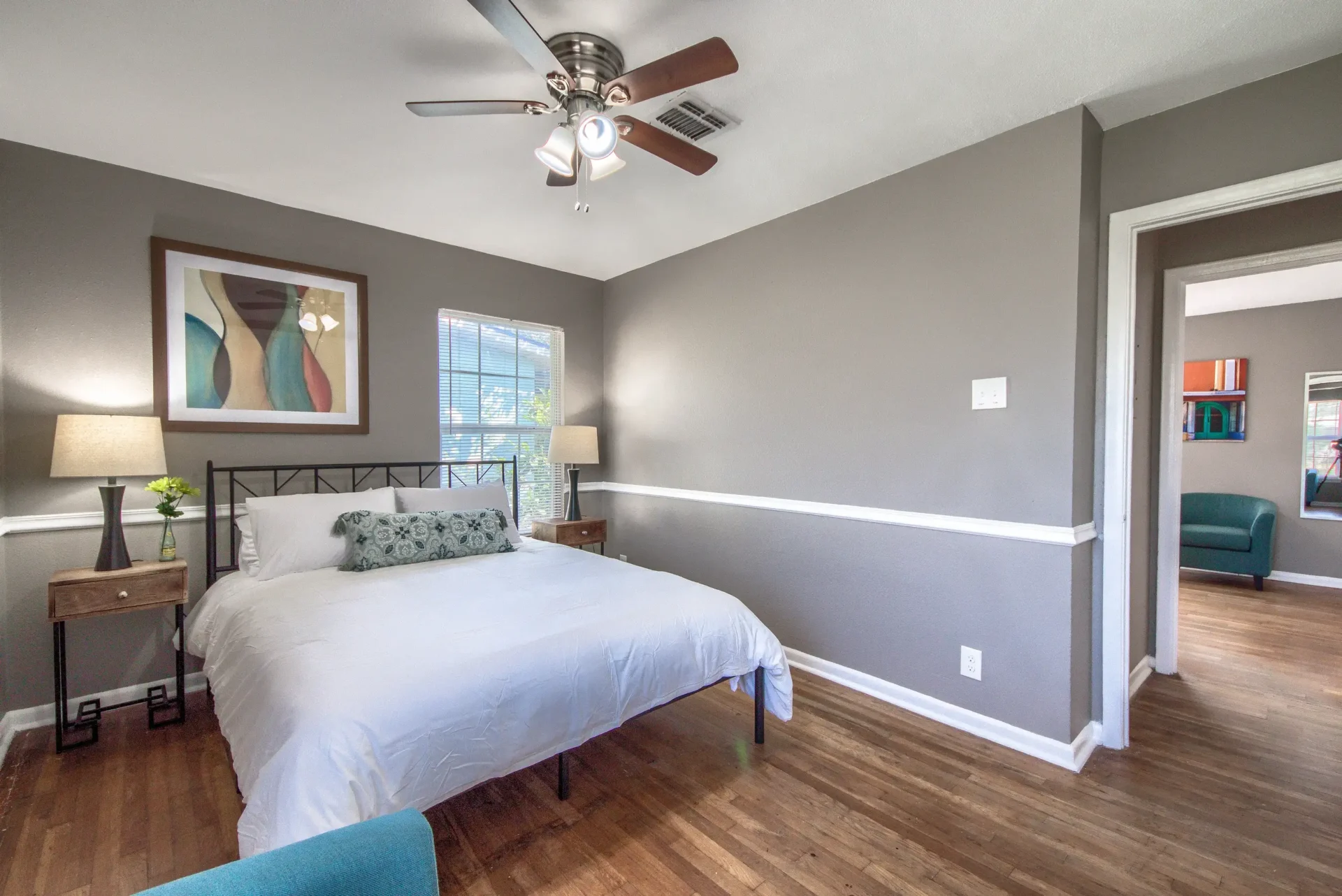 This is an updated mid-century three-bedroom, two-bath house. It has a Ring camera, fiber internet, stocked kitchen, linens, towels, stainless steel appliances, ceiling fans, and full-size washer dryer. Two bedrooms have queen-size beds. The third bedroom has two twin beds. One bathroom has a stand-up shower, and the other bathroom is a tub shower. The fenced backyard has a nice covered patio. There is ample parking and a one-car garage. It is very close to Fort Sam Houston, San Antonio Military Medical Center, and nearby Randolph Air Force Base. Parks, Trinity University, Incarnate Word, and entertainment are close by.